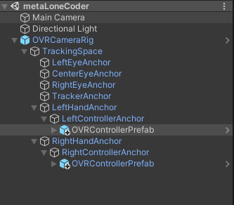 - Add OVRControllerPrefab to Child of Left and Right ControllerAnchor.
