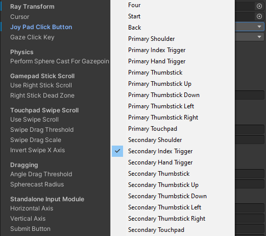 - In Joy Pad Click Button set it to Secondary Index Trigger (Right Controller Index trigger)